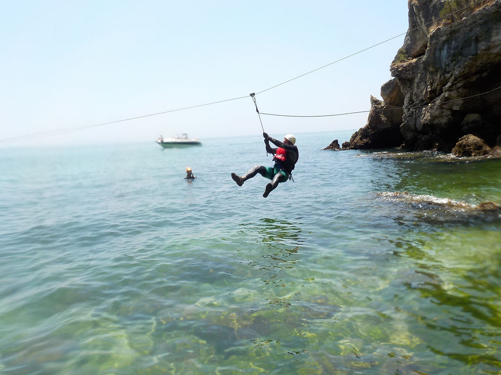 The best Coasteering of Portinho da Arrábida is an experience for those looking for an adrenaline rush in a paradisiacal place inside the Parque Marinho Luís Saldanha. Coasteering includes trekking, climbing, rappelling, swimming, speleology, sliding and jumping to the Sea ... In fact, many jump to the crystal clear waters from the coast of Serra da Arrábida. You'll also learn about the local flora and fauna and the culture of Portugal with your guide.