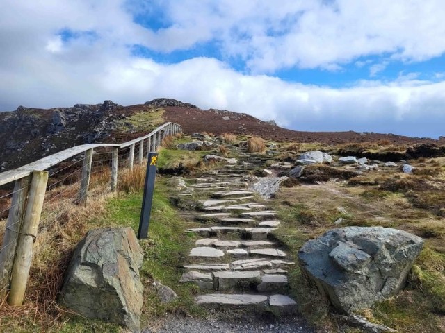 A mountain on the Atlantic coast of County Donegal, Ireland. At 601 metres (1,972 ft), it has the second-highest sea cliffs in Ireland after Croaghaun, and some of the highest sea cliffs in Europe. Rising almost 2,000 feet (598 meters) above the Atlantic Ocean, Sliabh Liag (Slieve League) is among the highest sea cliffs in Europe. Offering one of the most breathtaking views in Ireland, this rugged natural wonder is a must-visit destination for those seeking spectacular scenery and deep-rooted Irish heritage.