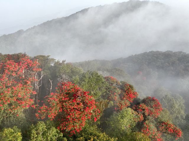 Stretching across five latitudes, spanning a vertical difference of 5,000 meters, and encompassing five climate zones, this is a unique region that transitions from humid tropical rainforest to temperate forest. The Gaoligong Mountains are bound by the Qinghai–Tibetan Plateau in the north, and extend to the Indochinese Peninsula in the south. Moisture-laden air from the Indian Ocean rises here, creating a secret homeland for countless endemic plants and animals. In spring, the world’s largest rhododendron species—the giant tree rhododendron—blooms in abundance. Skywalker gibbons call through the mountains, while sunbirds flutter their metallic-glossed wings among vibrant blossoms. In summer, hornbills busily feed their chicks among fig trees, while orchids and staghorn ferns reach their prime. At Baihualing, a five-star birdwatching paradise, the season is alive with abundant bird species. Autumn is golden with the ginkgoes, and it’s a perfect time for a soothing hot spring retreat. You can also walk the Ancient Tea Horse Road and witness the shifting vegetation zones along the way. In winter, giant squirrels glide gracefully through the mountains, and the nocturnal wonders of this “Natural History Museum of the World” are not to be missed.