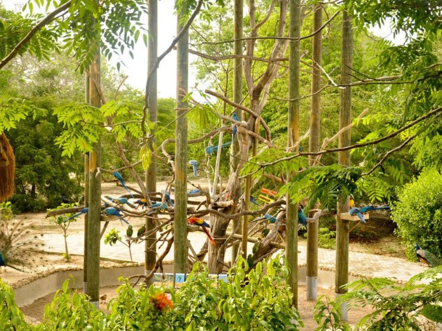 The bird show in the aviary takes place at 11:30 and 15:30.