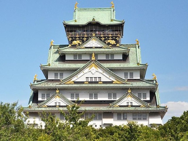 The main gate of Osaka Castle, which is an important cultural property. There are many spots you can't miss, such as the stone wall made from gigantic stones, a few times bigger than human beings!