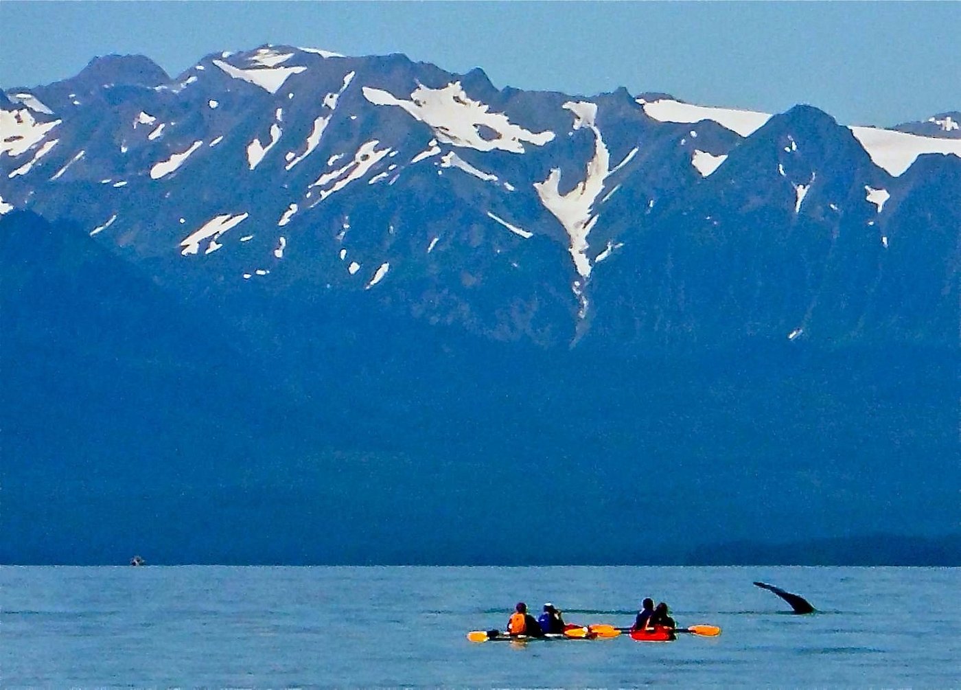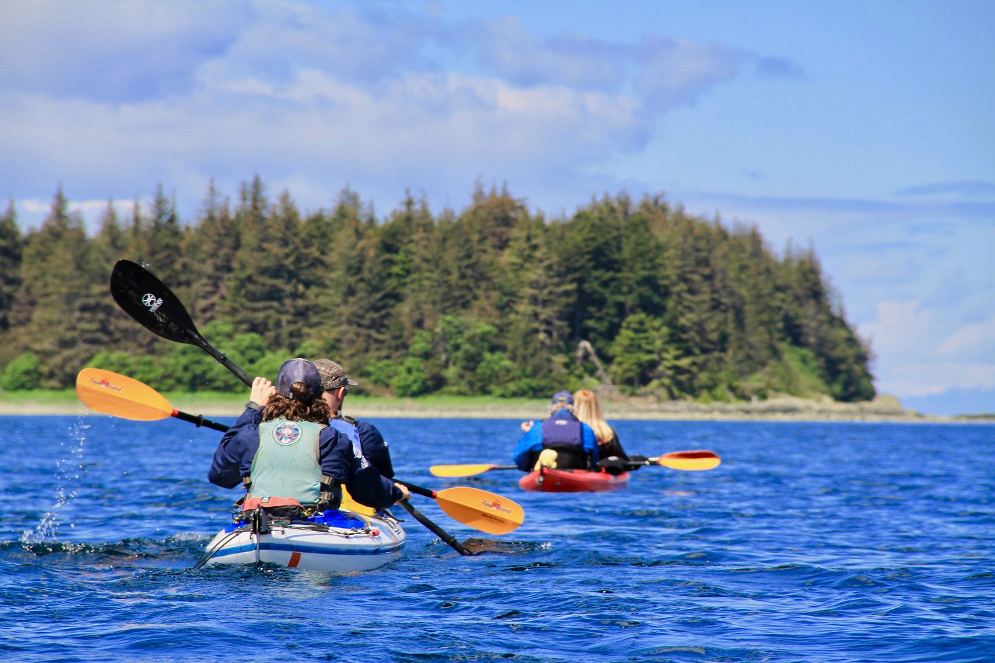 Step aboard our comfortable 6-passenger motorboat for an extraordinary journey through the Inside Passage, heading to the most abundant humpback whale feeding area and one of Alaska’s prime kayaking destinations. As we set sail towards the Channel Islands State Marine Park, your seasoned captain and kayak guide will lead you on an incredible wildlife-viewing adventure within this vibrant and diverse ecosystem while you kayak with whales. The Channel Islands serve as a thriving habitat for an array of marine life, including humpback whales, orcas, steller sea lions, porpoises, various bird species, and seals. Your knowledgeable kayak guide and boat captain will lead you through this dynamic natural history experience, sharing their local expertise about the area while actively searching for the best wildlife encounters. Upon arriving at a secluded beach, your guide will acquaint you with the kayaks and provide a brief introduction to this unique mode of exploration. In no time, you’ll glide across the serene waters in double kayaks, embarking on a quest for more intimate wildlife interactions. As you paddle, you’ll be surrounded by the breathtaking backdrop of snow-capped peaks and meandering glaciers that adorn the distant horizon. This active eco-adventure was voted as one of the top 10 Best Kayak Tours by USA Today in 2023. It is designed to accommodate participants of all experience levels, granting you a remarkable opportunity to witness the grandeur of Southeast Alaska’s landscapes and seascapes while immersing yourself in the captivating world of its wildlife from a fresh and unforgettable perspective.