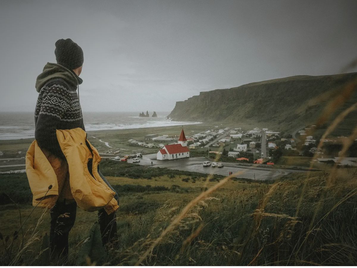 A powerful cascade plunges an impressive 60 meters. Here, we pause to admire yet another of nature’s incredible masterpieces before making our way towards Vík í Mýrdal, one of Iceland’s most renowned towns. This charming coastal village is unique in the country as it lacks a harbour. From its picturesque church, we can capture stunning panoramic photos—not only of the town itself but also of the vast coastline stretching beyond.