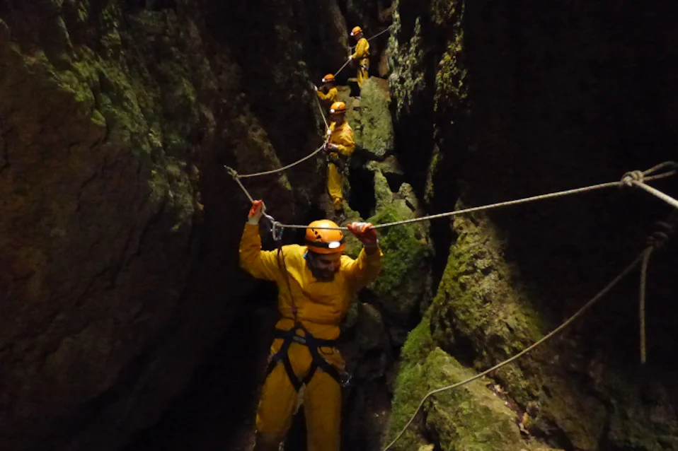 Soft Coasteering, or Fly Into Water, is a multi-activity which includes Trekking, Swimming, Caving, Small Climbing and Sea Jumping ... to the crystal clear waters of the Serra da Arrábida coast. This is an activity accessible to anyone from 8 years old.