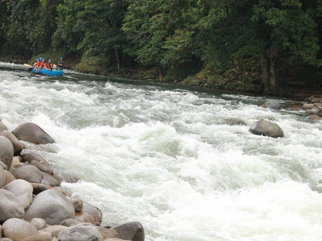 After going through some rapids we stop to swim in a pool and eat some tropical fruits. As the river descends, the rapids get calmer, offering chances to observe some wildlife such as river birds, sloths, monkeys, toucans, or frogs. Upon returning from the river we stop at our restaurant La Finquita where we will have a delicious Costa Rican lunch.